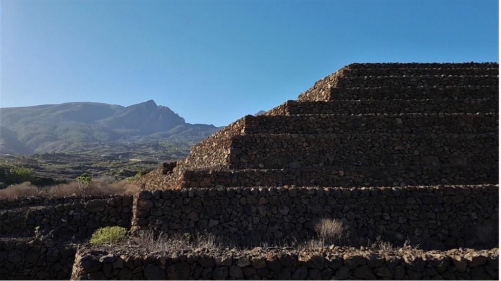 Fino al 1991 si credeva che le piramidi fossero semplici mucchi di pietre accatastati dai contadini ai margini dei campi durante gli anni in cui le Canarie divennero un luogo privilegiato per l’allevamento a terra della Cocciniglia, un insetto da cui si estrae un colorante rosso vivo, usato nella moda, nei cosmetici e negli alimenti.