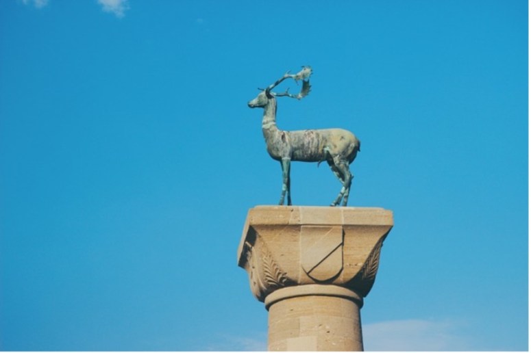 “No, ma ho fatto ricerche sull’architettura locale a Venezia. La torre di San Nicola sorge sulle rovine subacquee del Colosso di Rodi. Con il tuo strumento ottico vedrai un canale delimitato da due statue di un cervo e una cerva”.