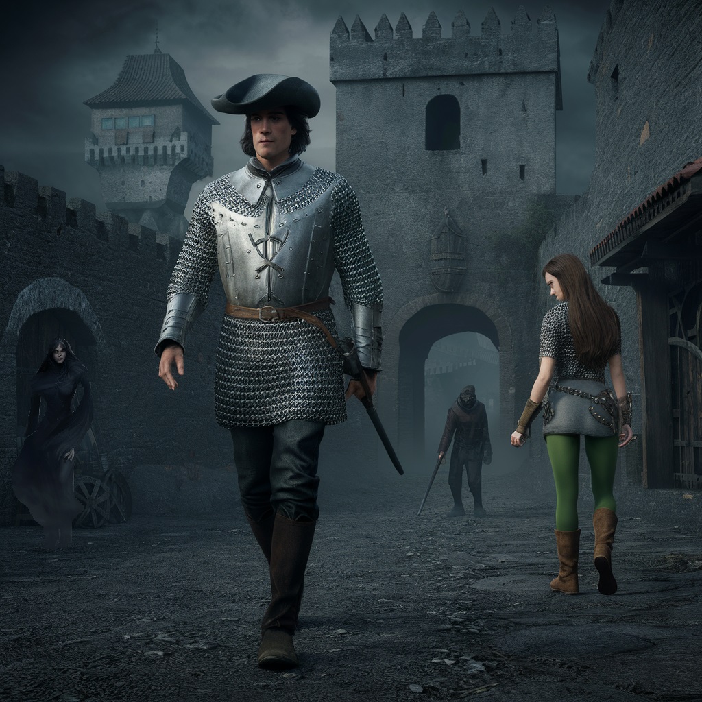 Scomparsa la spia, l’attenzione della giovane si sofferma per un attimo sulla folla acclamante lo spettacolo: contadini dalla tipica tunica lunga fino ai fianchi e dai calzoni di tela grezza trattenuti in vita da una robusta cinghia di pelle; soldati in cotta di maglia con l’immancabile elmo splendente al sole; marinai dalla lunga barba e dalla pelle abbronzata, passeggiatrici con abiti scollati, vedove vestite di nero con il tipico copricapo che nasconde completamente i capelli, le tempie, il collo e la parte superiore del petto e qualche frate che chiede l’elemosina per i poveri.